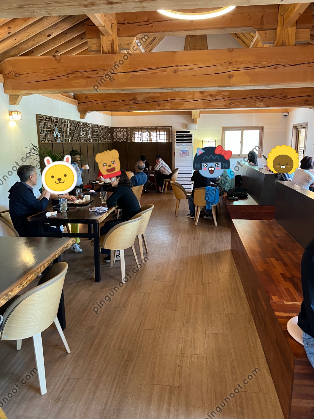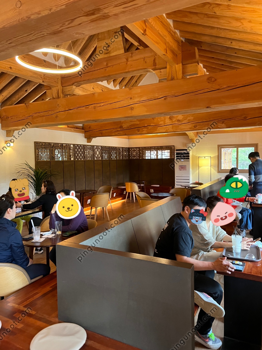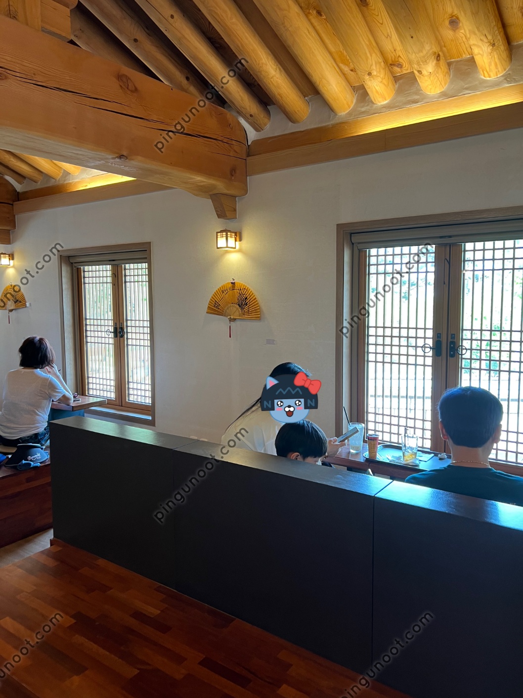 안에 들어가면 모던하면서도 한옥의 따뜻한 느낌이 잘 살아있어요. 좌식 공간도 있어서 한옥 분위기를 제대로 느낄 수 있답니다. 손님들이 꽤 많이 오는 편이라 주말이나 점심 시간에는 조금 붐빌 수 있으니 참고하세요.