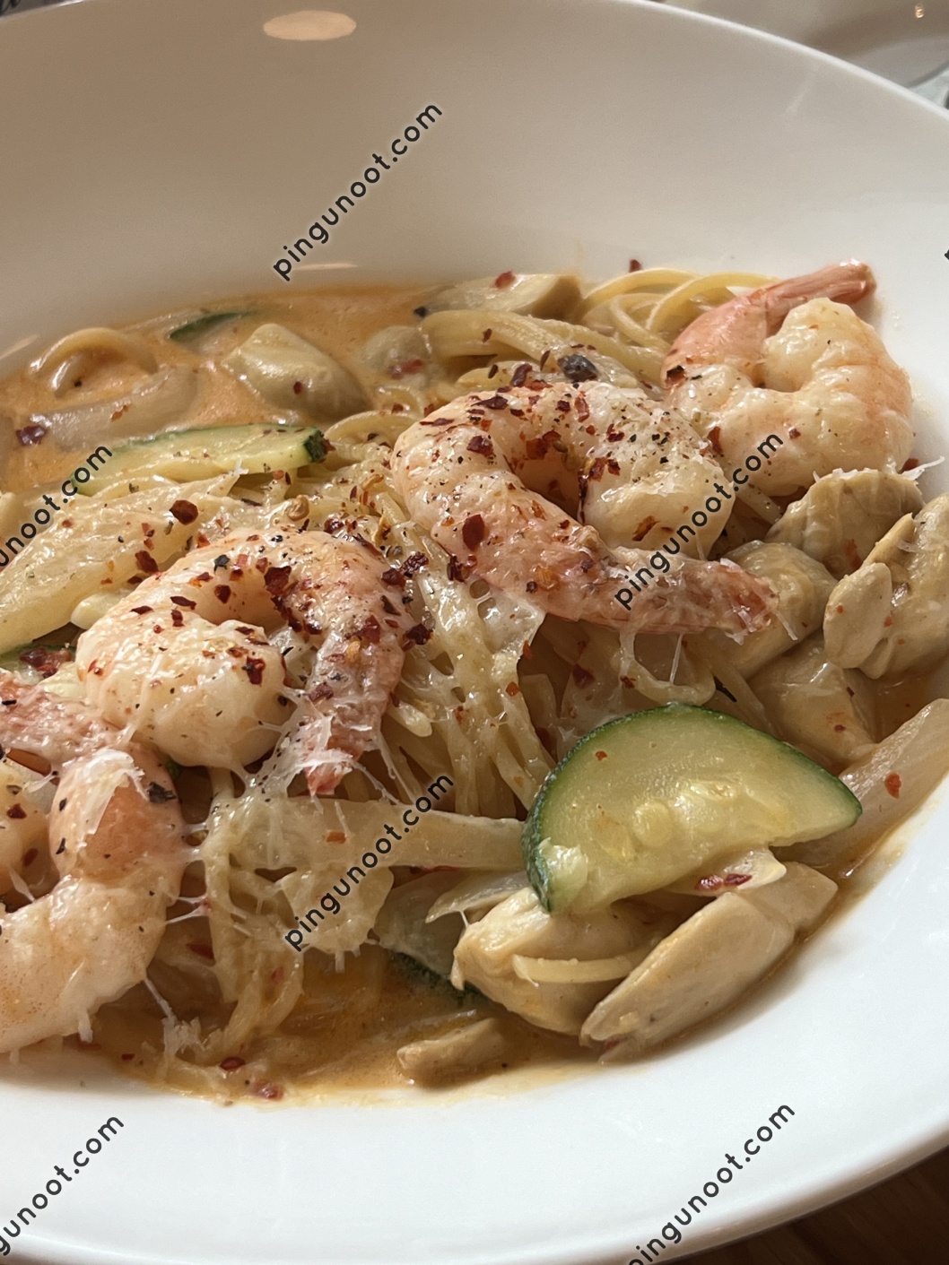크리미하면서도 고소한 맛, 그리고 신선한 새우의 식감이 인상적입니다.