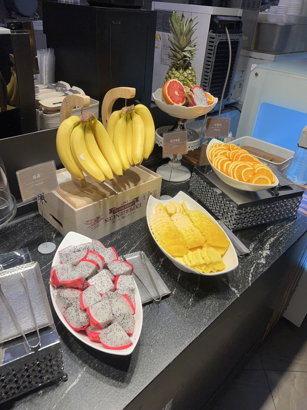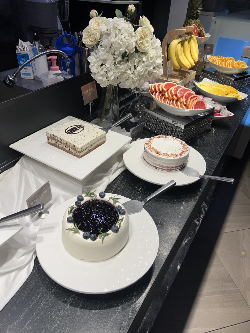 더펠리즈 내부는 깔끔하고 정돈된 정사각형 동선으로 설계되어 있어 이동이 매우 편했어요. 특히, 사이드에는 베이커리와 카페 메뉴 코너가 자리 잡고 있어 디저트까지 즐길 수 있어요.