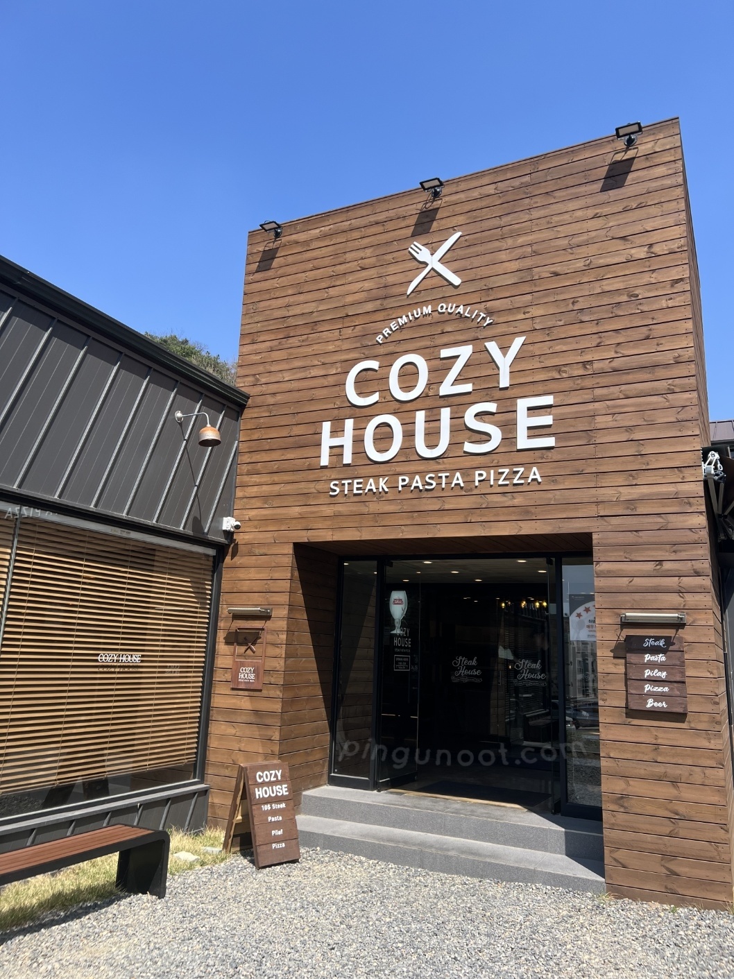 코지하우스 입구는 깔끔하고 세련된 느낌이에요.