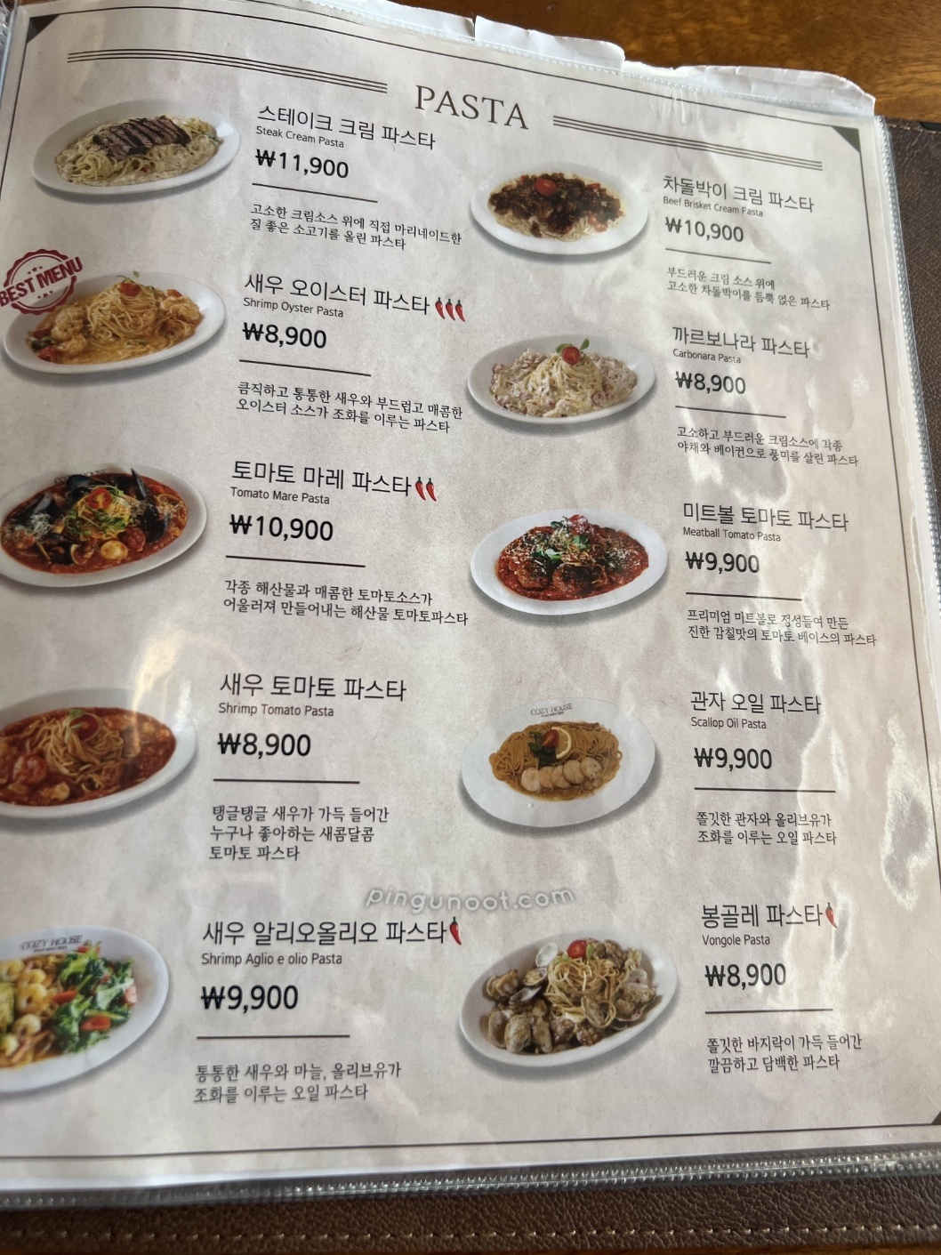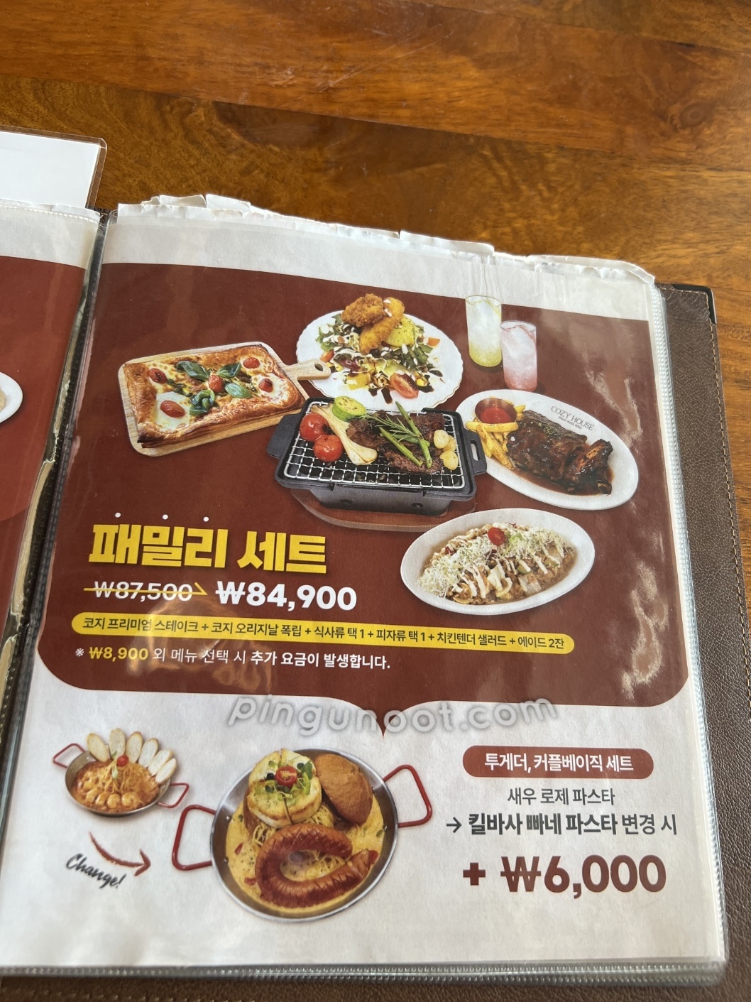 스테이크, 파스타, 피자, 리조또 등 다양한 메뉴가 준비되어 있어 선택의 폭이 넓고,세트 메뉴도 알차게 구성되어 있어 가족이나 단체 모임에 적합합니다.