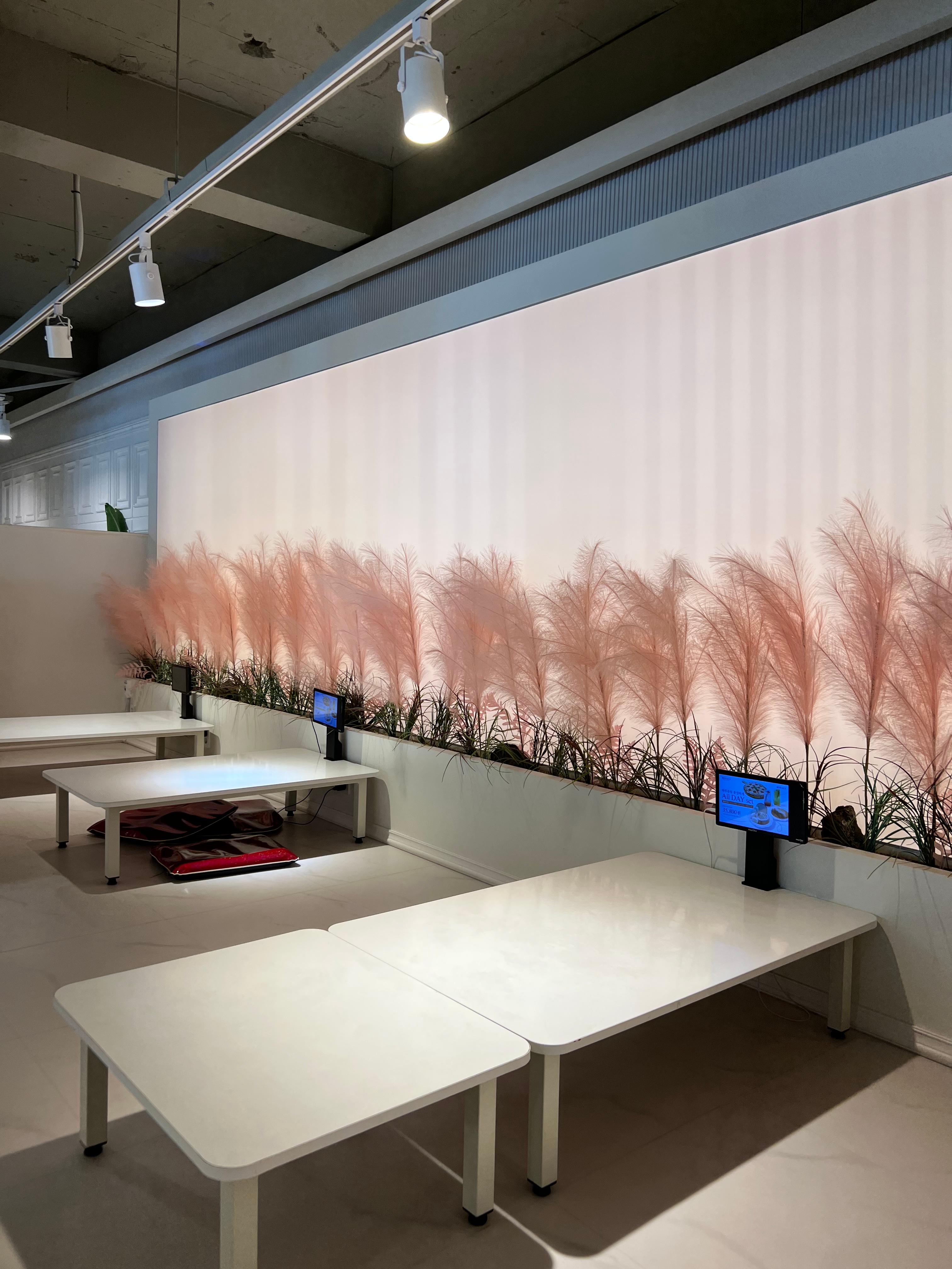 미태리는 넓고 세련된 인테리어가 돋보이는 곳입니다. 화이트톤 공간에 샹들리에가 매장을 고급스럽게 밝혀주고, 바닥과 테이블 모두 깔끔하게 관리됩니다.